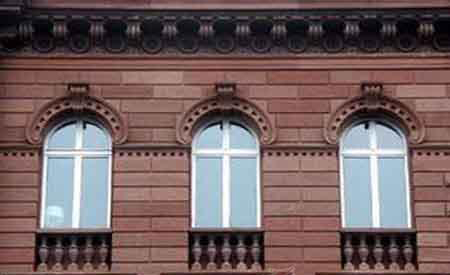 ![]() 建筑門窗是建筑物不可缺少的組成部分,它除了具有采光、通風(fēng)和交通等作用外,還具有隔熱保溫的功能。此外,建筑門窗的造型和色彩的選擇對建筑物的裝飾效果影響也很大,是建筑外維護(hù)部分最活潑、技術(shù)發(fā)展最快的元素。 建筑門窗是建筑工程中的一種構(gòu)配件產(chǎn)品,是圍護(hù)結(jié)構(gòu)的重要組成部分。建筑門窗不但有著擋風(fēng)遮雨、保溫、隔聲功能,它的裝飾作用、藝術(shù)效果始終也是建筑師在建筑創(chuàng)作方面不可分隔的部分。通過門窗形式、分格、組合,能夠較強(qiáng)烈的體現(xiàn)和互映出建筑的特點(diǎn)、特征、符號和寓意。中國古典園林建筑中的門窗充分體現(xiàn)園林建筑那種畫中有畫,景中有景的藝術(shù)特色。在歐式建筑中的建筑門窗其形式和特點(diǎn)充分顯現(xiàn)它的莊重、典雅的效果。而現(xiàn)代建筑則應(yīng)體現(xiàn)出現(xiàn)代人快節(jié)奏的生活、工作特點(diǎn)。 合理選擇建筑門窗 一、開啟形式門窗的選擇 不同開啟形式的門窗,有一定的適用范圍,應(yīng)根據(jù)使用要求、洞口尺寸、技術(shù)經(jīng)濟(jì)、材料供應(yīng)及加工制作條件妥善選擇。在確定洞口尺寸時,應(yīng)注重各種開啟形式的構(gòu)造特點(diǎn),以保證必需的凈空尺寸。應(yīng)盡量減少洞口規(guī)格,減少窗的類型,統(tǒng)一材料規(guī)格,簡化裁口,考慮門窗的標(biāo)準(zhǔn)化和互換性,為工廠制作創(chuàng)造條件。 二、各種開啟形式、用途及特點(diǎn) 1、平開窗(外平開、內(nèi)平開):平開窗構(gòu)造簡單,應(yīng)用最為普通,便于安裝紗窗。外平開窗的排水問題容易解決,開啟時不占室內(nèi)空間,但開啟扇有被風(fēng)刮落或損壞的缺點(diǎn)。窗扇為奇數(shù)時,擦外側(cè)玻璃不方便。樓房窗應(yīng)解決擦玻璃問題。樓房外開窗,窗扇為奇數(shù)(1、3、5)且中間扇固定時,擦窗不安全,因此設(shè)計時應(yīng)考慮便于擦窗問題。解決奇數(shù)外開窗的兩種基本方式:⑴把中間扇設(shè)計成特殊開啟方式:如中間扇內(nèi)開、中轉(zhuǎn)活扇或?yàn)橥评。⑵利用特殊裝置使側(cè)扇開啟時與窗框留有適當(dāng)?shù)木嚯x。 2、推拉窗(水平推拉、垂直推拉):推拉窗不占室內(nèi)空間,窗扇受力狀態(tài)好,適宜安裝較大玻璃,但通風(fēng)面積受限制。 3、懸窗(上懸、下懸、中懸):外開上懸窗防雨效果好,但受開啟角度限制,通風(fēng)效果較差。內(nèi)開下懸窗占室內(nèi)空間,多用于有特殊要求的房間或室內(nèi)高窗。中懸窗構(gòu)造簡單,通風(fēng)效果好,多用于高側(cè)窗。 4、立轉(zhuǎn)窗(引風(fēng)窗):引風(fēng)效果好,防雨及密閉性差,多用于低側(cè)窗。引風(fēng)窗適用于散發(fā)大量熱量、粉塵的工業(yè)廠房,有自然通風(fēng)和遮陽作用,采用插銷固定可開啟0°、45°、90°、135°引風(fēng)窗,采用連桿螺栓固定時,可開任意角度。其出墻寬度應(yīng)大于窗扇最大出墻寬度。 5、傳遞窗:傳遞窗一般有平開、水平推拉、垂直推拉、旋轉(zhuǎn)式及箱式等。設(shè)計時應(yīng)根據(jù)具體要求加以選用。旋轉(zhuǎn)式傳遞窗,常用作暗式、防光傳片窗。箱式傳遞窗具有兩道窗扇,設(shè)置開關(guān)聯(lián)動裝置,使其中一扇窗經(jīng)常保持關(guān)閉。 6、百葉窗:百葉窗有固定式、活動式兩種,百葉窗一般具有透風(fēng)、遮陽、防水、遮擋視線的功能。當(dāng)擋雨、遮光要求較高時,可采用活動式或異形固定葉片,如有采光要求,可采用透明或半透明葉片。 7、傳統(tǒng)民居窗:傳統(tǒng)民居窗除適用于傳統(tǒng)民居建筑外,也適用于園林建筑中,如茶室、餐廳、文苑、文化館等。過去均采用木材作傳統(tǒng)民居窗,隨著化學(xué)建材的發(fā)展,也可采用PVC塑料型材或鋁型材制作。但是從表面處理上應(yīng)仿木質(zhì)。 三、如何選擇建筑門窗 1、高層民用建筑:包括辦公樓、綜合樓、旅游建筑,可選用鋁合金門窗或PVC塑料門窗,內(nèi)平開窗或推拉窗均可。 2、居住建筑:一般包括住宅、旅游賓館、醫(yī)院病房樓、公寓樓、集體宿舍、幼兒園等,均應(yīng)選用傳熱系數(shù)小、節(jié)能效果好的門窗?蛇x用PVC塑料門窗型材中空玻璃,或隔熱鋁合金門窗型材中空玻璃,還可選用低輻射中空玻璃或普通雙層窗。 3、住宅小區(qū):住宅小區(qū)中的建筑,包括多層住宅或公建,選用PVC塑料門窗更合適,小區(qū)中的高層住宅,如果能夠滿足風(fēng)壓強(qiáng)度要求,宜選用PVC塑料門窗。