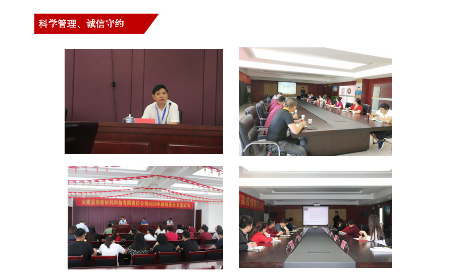科學(xué)管理 誠(chéng)信守約 優(yōu)質(zhì)的企業(yè)離不開科學(xué)先進(jìn)的管理。嘉偉公司以科學(xué)、制度、人性化管理為依托,建立了全面的質(zhì)量管理系統(tǒng),健全了績(jī)效考核崗位責(zé)任制。2020年對(duì)于我們來(lái)說(shuō),是管理體系優(yōu)化布局、啟動(dòng)年,是實(shí)施“科學(xué)管理上臺(tái)階、誠(chéng)信守約樹品牌”計(jì)劃的第一年,是公司做精做強(qiáng)、實(shí)現(xiàn)可持續(xù)性發(fā)展的起步年!公司全面推行6S精益化管理,以技術(shù)創(chuàng)新、管理創(chuàng)新和管理提升為主線,始終踐行“制度管人、流程管事”的管理理念,堅(jiān)持以“三個(gè)圍繞”、“五個(gè)意識(shí)”、“五個(gè)強(qiáng)化”的工作指導(dǎo)思想,通過(guò)科學(xué)管理實(shí)現(xiàn)誠(chéng)信守約,為公司的穩(wěn)步發(fā)展奠定堅(jiān)實(shí)的基礎(chǔ)。