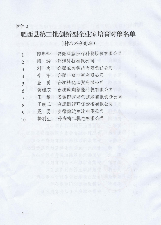根據《中共肥西縣委肥西縣人民政府關于印發(fā)<肥西縣人才驅動高質量發(fā)展若干意見>的通知》以及相關實施細則、評審辦法等文件規(guī)定,經鄉(xiāng)鎮(zhèn)(園區(qū))推薦、部門初核、專家評審、考察公示等程序,安徽嘉偉新材料科技有限責任公司董事長孔德云先生成功當選肥西縣創(chuàng)新型企業(yè)家。